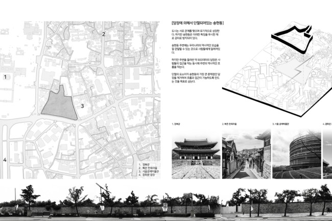 송현동의 담장은 주변에 위치한 경복궁, 인사동, 북촌 한옥마을 등이 형성하고 있는 역사, 문화적 흐름을 막고 있으며, 이는 주변과의 단절을 더욱 심화시킨다.
