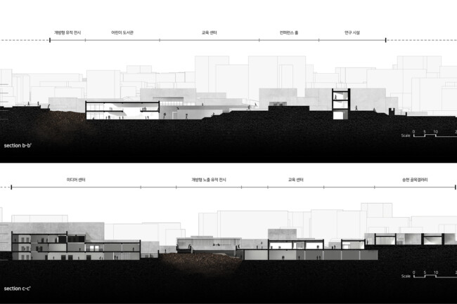 이처럼 단절되고 방치된 송현동에 사람들이 찾아올 수 있도록, 그리고 담장 안쪽으로 송현동이 가지고 있는 유적들에 대한 이야기를 문화시설을 통해서 들을 수 있도록 하고자 한다. 주변과의 맥락을 고려해 전시시설과 도서관, 어린이 박물관 그리고 연구시설을 크게 계획하고 남아 있는 유적을 다양한 방법으로 경험 할 수 있도록 한다.