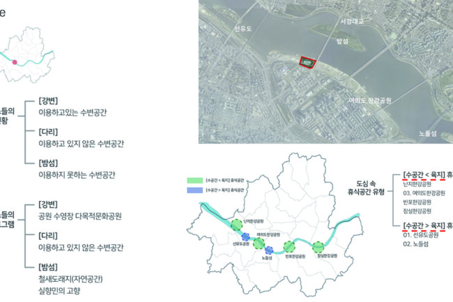 그러나 수변공간으로서의 휴식공간은 시각적인 영역에 머물러있고, 여의도 한강공원은 시민들에게 더욱 개방되고 적극적인 수변 휴식공간으로 다가갈 가능성을 아직 발휘하지 못하고 있다.
