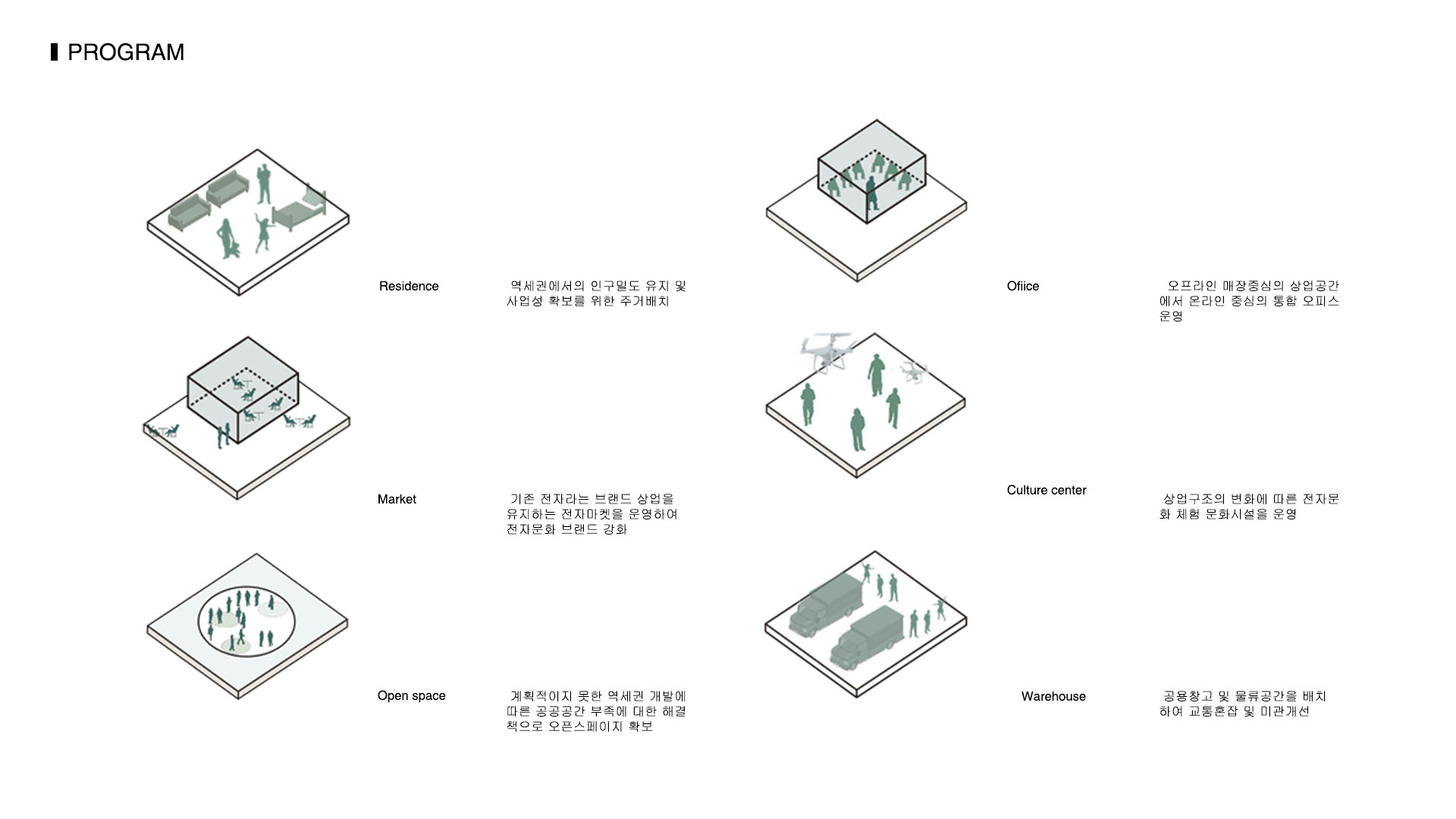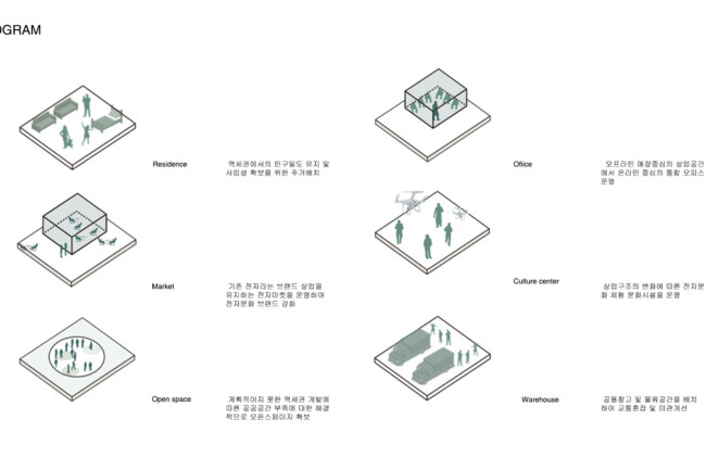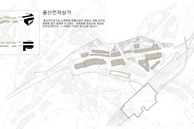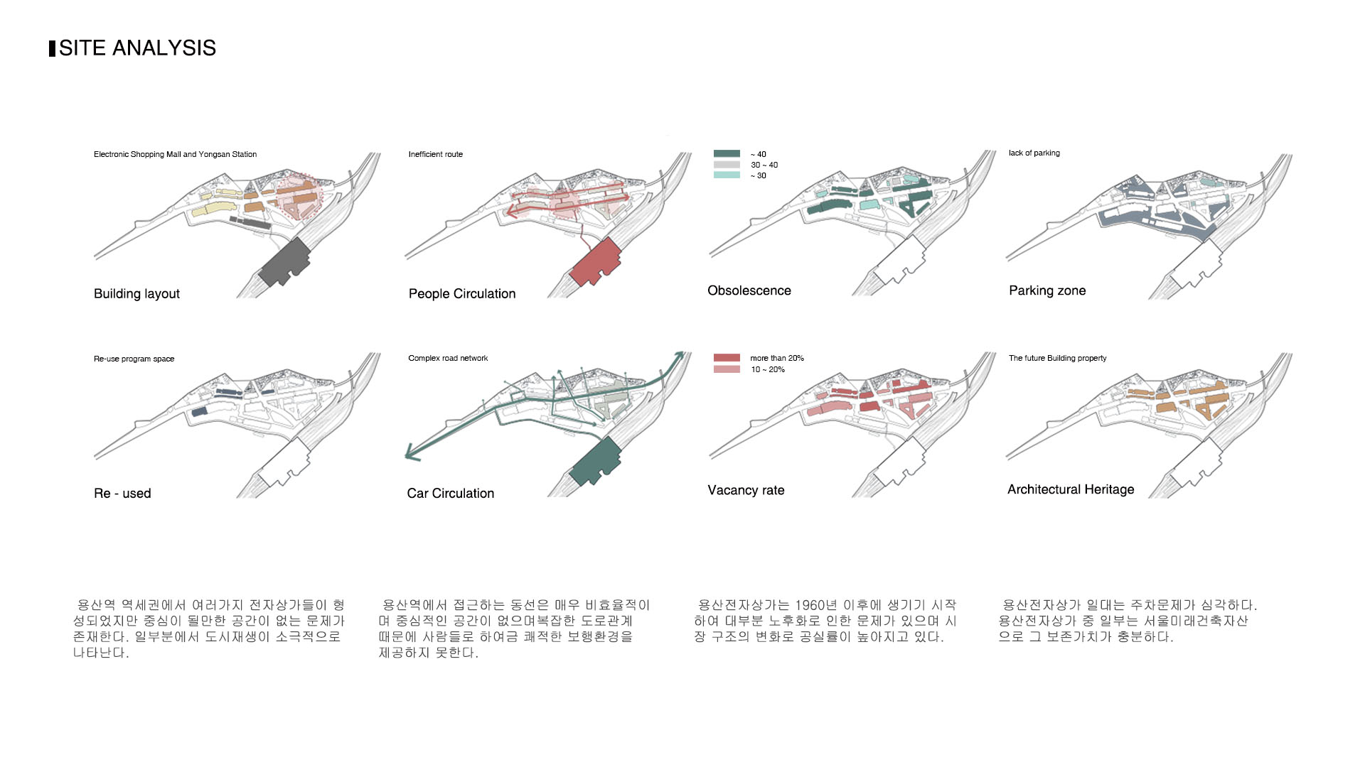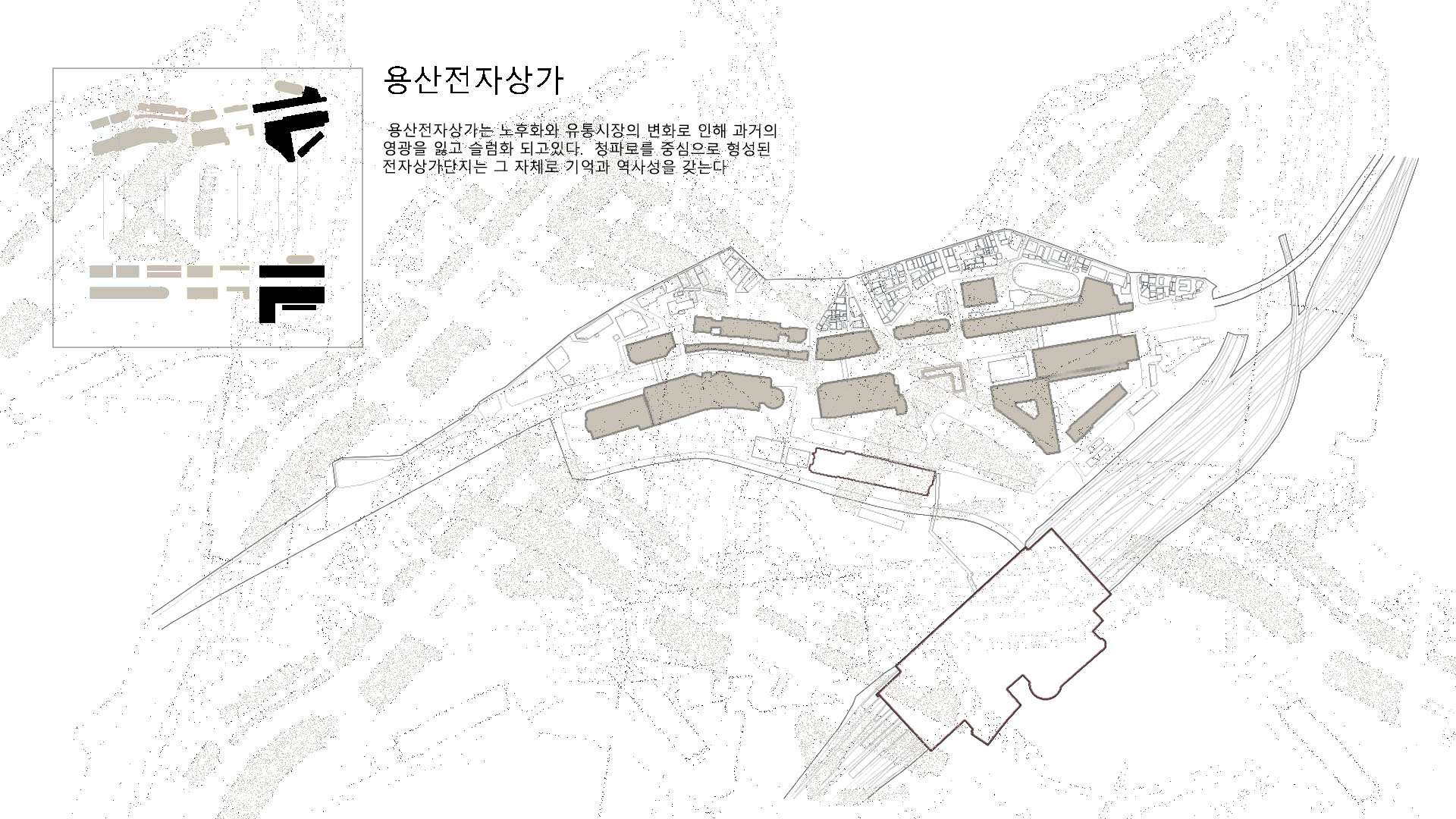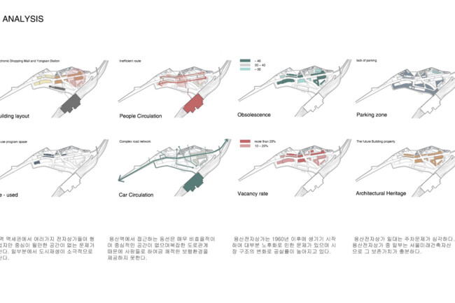 과거 용산전자상가의 기억과 함께 용산역 일대가 가지는 여러가지 문제점을 담은 리노베이션을 통해 새로운 용산 전자 플랫폼을 만드려고 한다.