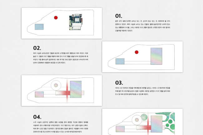 광주광역시 상무지구에 있는 상무소각장은 주민들의 반발 때문에 2016년 가동을 중지하게 되었다. 주민들에게 혐오시설로 여겨지던 소각장 건물이, 리모델링을 통해 주민들에게 문화시설을 제공하게 된다면 어떨까? 도시 미관을 해치는 유휴부지를 활용하여 주민들의 커뮤니티 중심 공간 및 문화거점 역할을 부여하고자 하였다. 연기를 배출하던 소각장 굴뚝에서, 문화를 배출하는 굴뚝으로의 변화를 꿈꾼다.
