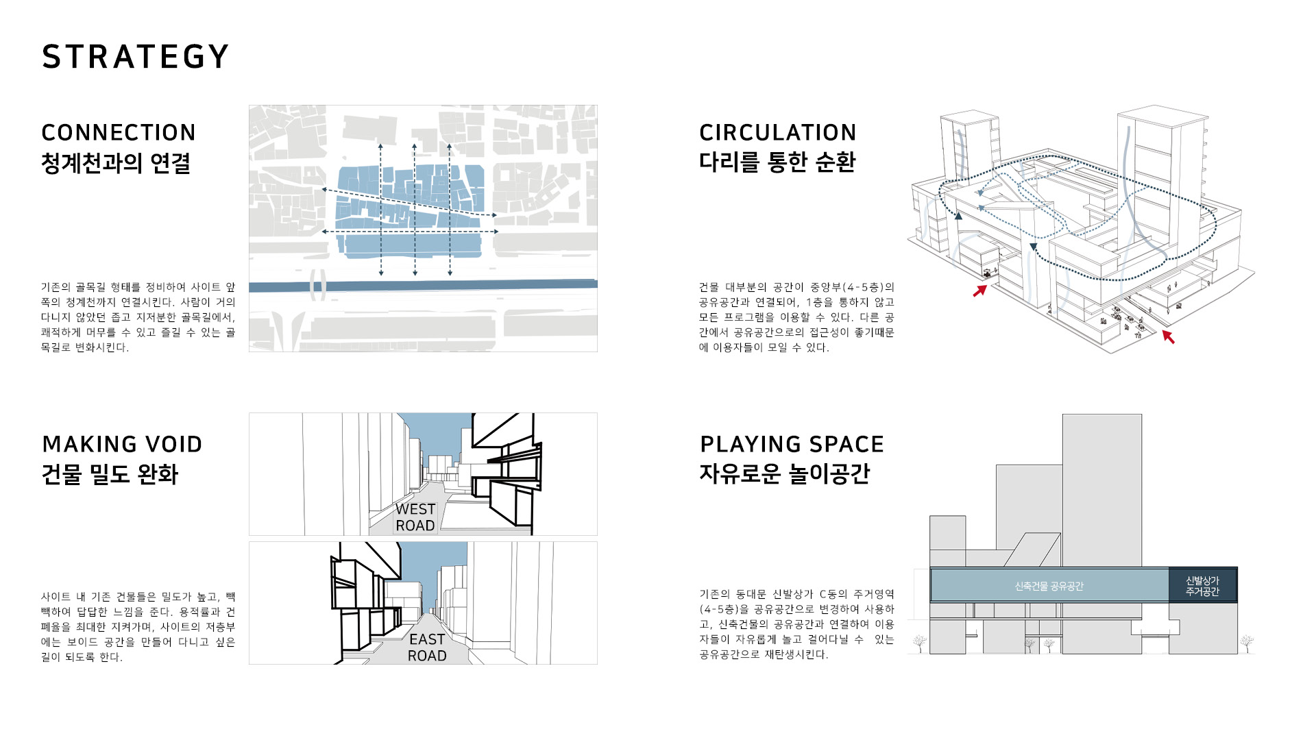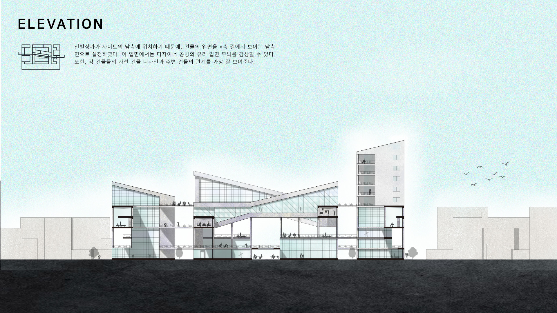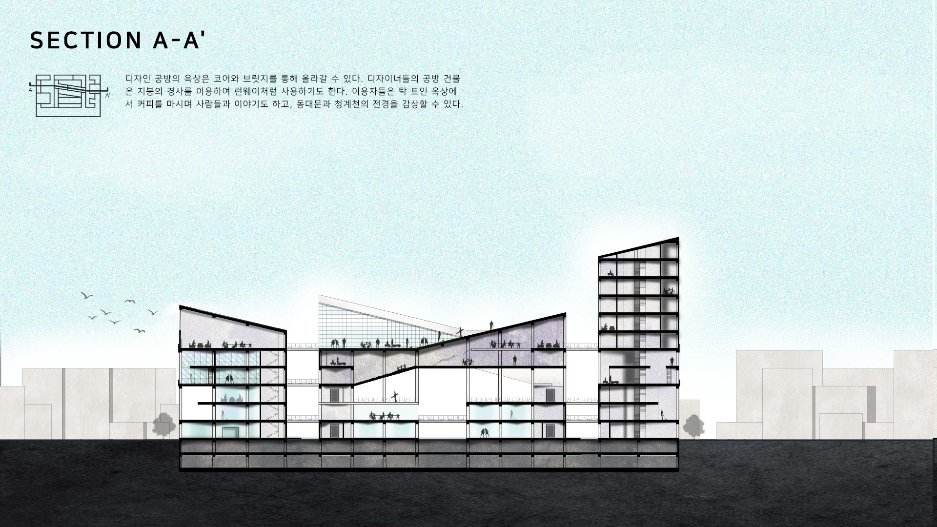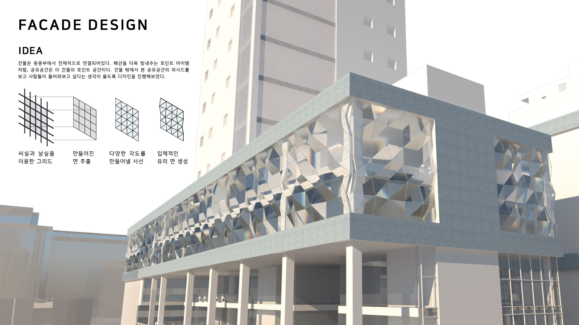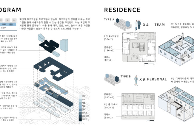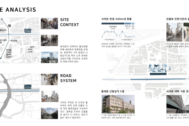 동대문의 현대화 및 특색있는 패션 디자인 체계 구축을 위해, 소비자와 신진 디자이너 사이에 많은 소통이 이루어져야 한다고 생각했다. 그래서 소통이 충분히 이루어질 수 있는 공간을 만드는 것을 목적으로 이 프로젝트를 진행하게 되었다. 소통이 이루어지면 생각이 발전하게 되고, 이는 동대문에서 독특하고 다양한 패션 디자인을 만들어내는 시발점이 되며, 현대화된 건축물을 통해 패션관광특구로써의 기능을 수행 할 수 있을 것이다.
