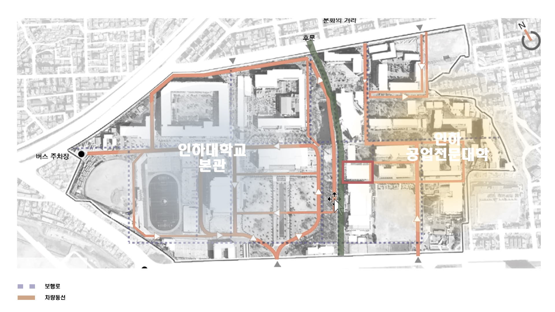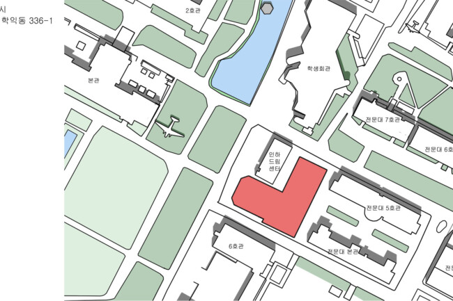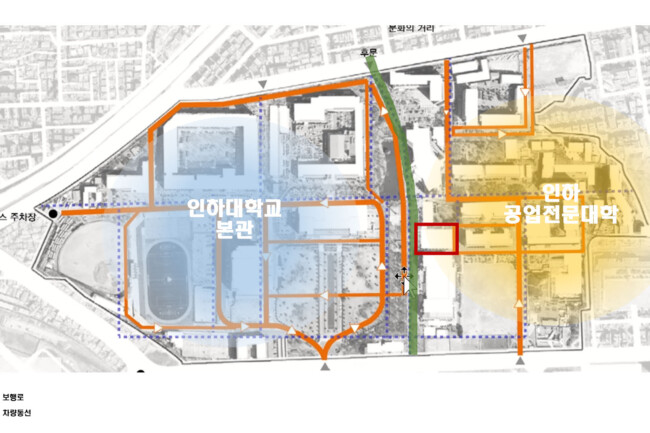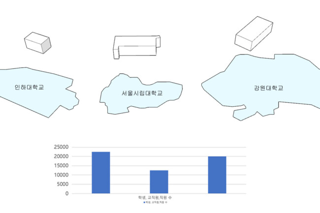 인하대학교에서 실내체육관이 적은 면적을 차지하고 있으며 활동이 제한되어있다는 문제점을 찾았다.