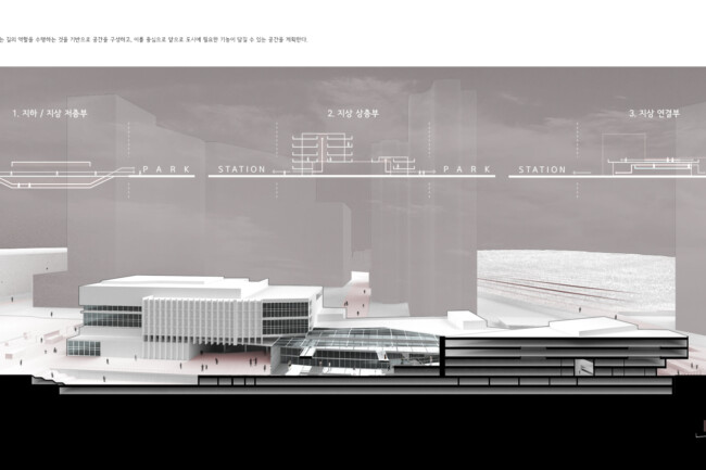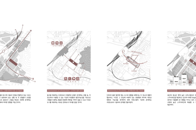 국가공원이라는 새로운 인프라의 등장으로 도시의 변화가 당연하게 느껴지는 현 시점에서 기존까지 그 도시를 대표하고 있었던 주요 인프라인 용산역과의 적극적인 연계가 요구된다 각 인프라시설들은 큰 규모와 영향력을 갖고 있기 때문에 어느 한 쪽으로 치우치지 않는 위계가 중요하고 이것은 자연스럽게 도시의 통합을 의미한다고 볼 수 있다.