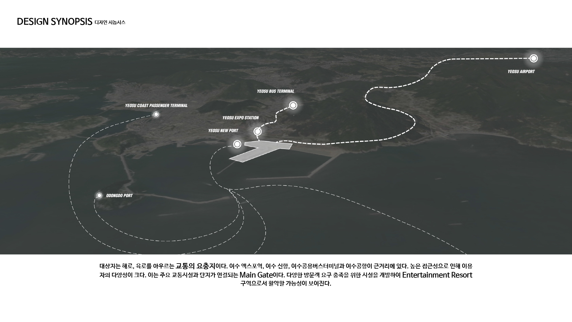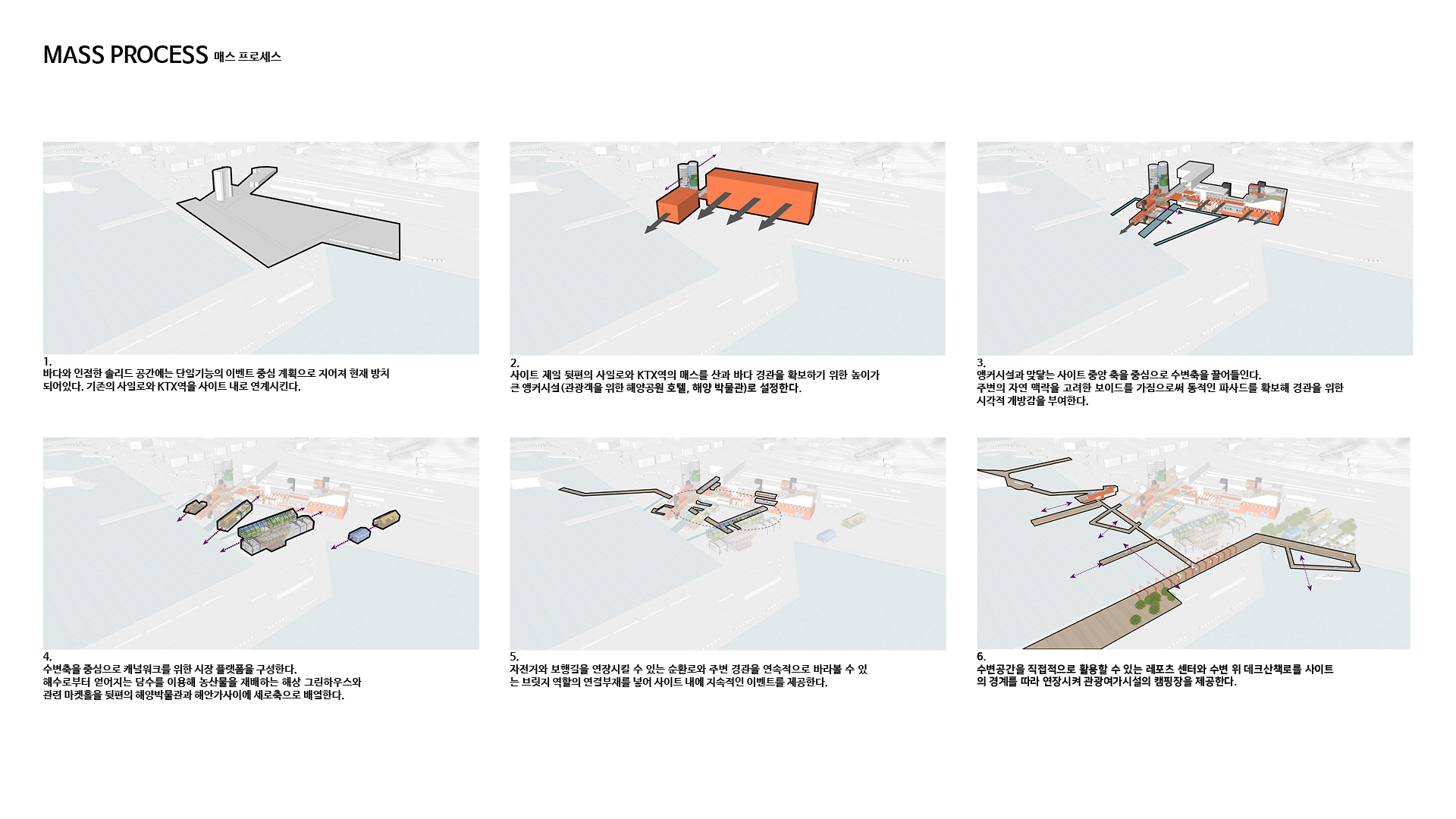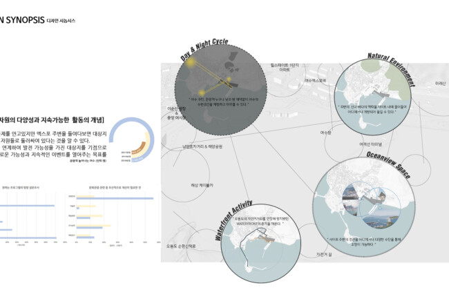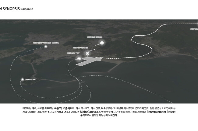 도시를 연결하는 과정을 통해 여수 지역의 정체성과 장소성을 보여주는 지속가능한 수변 도시의 모습을 제안한다.