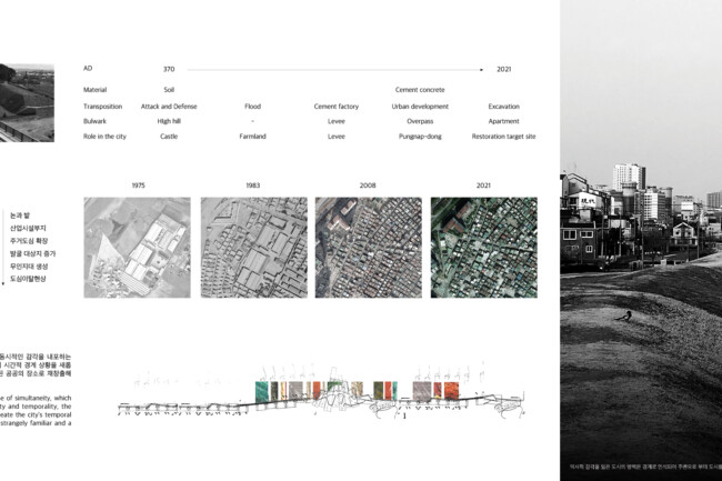 역사적 감각을 활용하여 풍납토성 복원에 관한 제안으로 도시 방벽의 재 프로그램화를 통해 현재적 영원성을 중심으로한 공공의 장소를 만들어낸다.