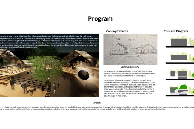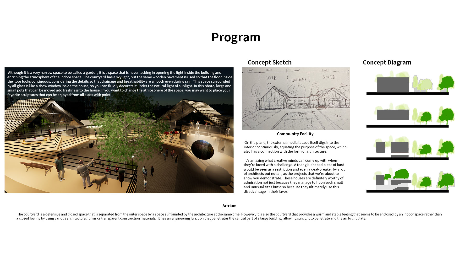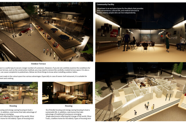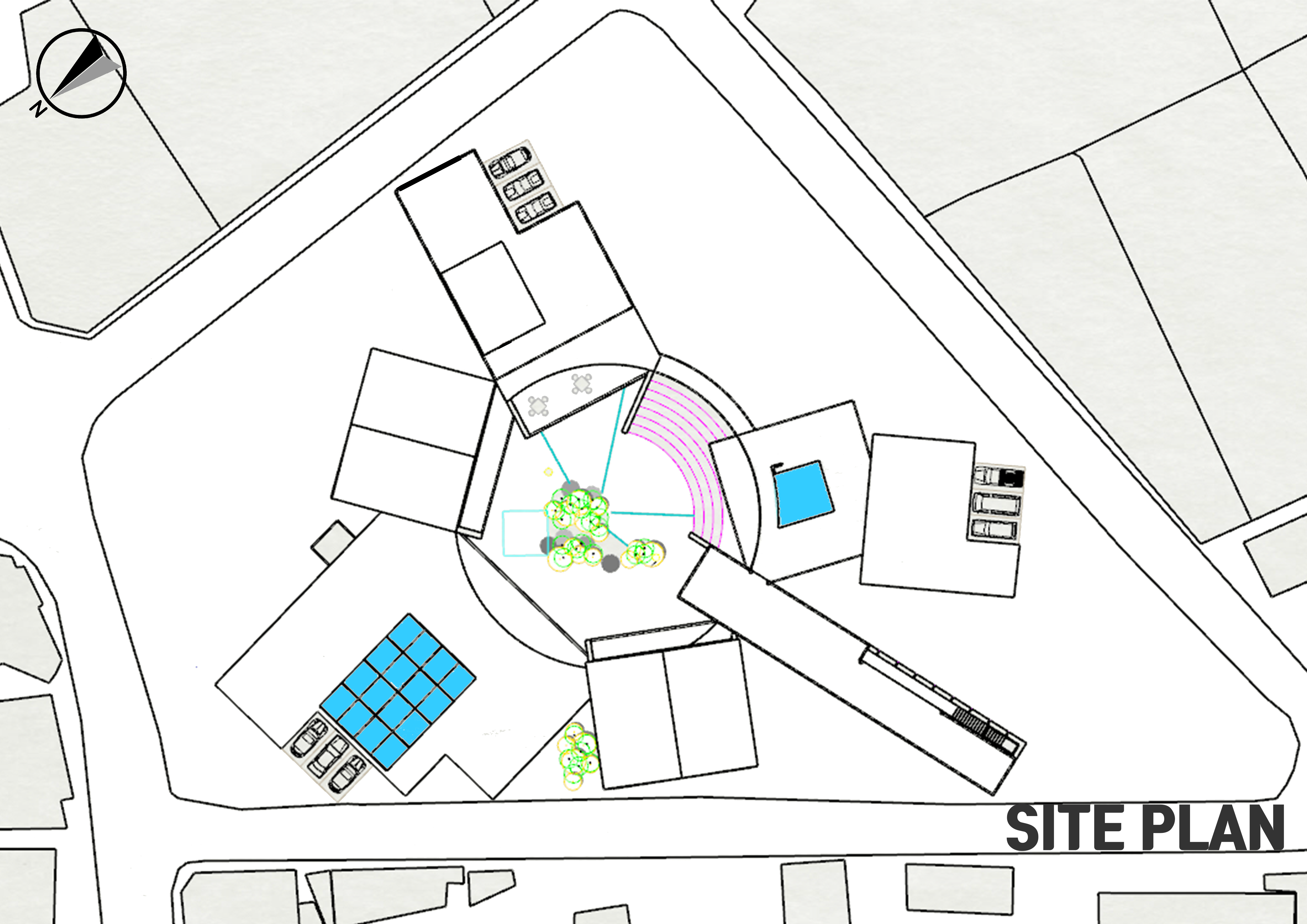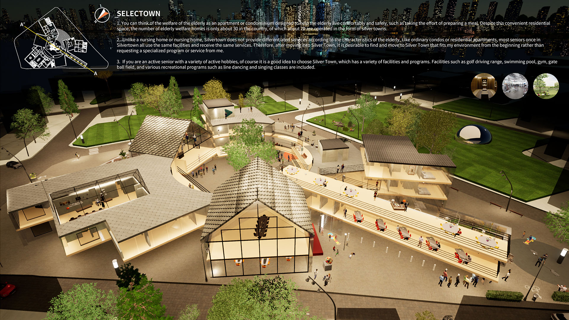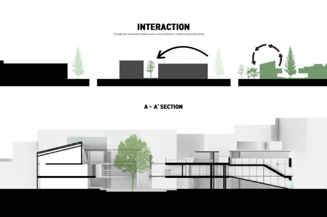 1. On the basis of concentric circles, seven axes are spread out toward the south, and a structure that allows for an optional experience is planned. Various spaces such as residences, communities, restaurants, and sports facilities were constructed, and by placing a large courtyard in the middle, the surrounding green space was brought to the center.