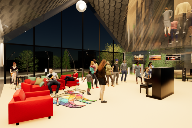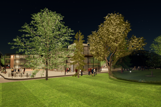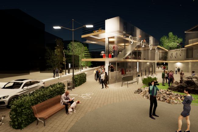 2. The current view is the main entrance to the south, emptied and filled with people to get the most out of the natural environment.
