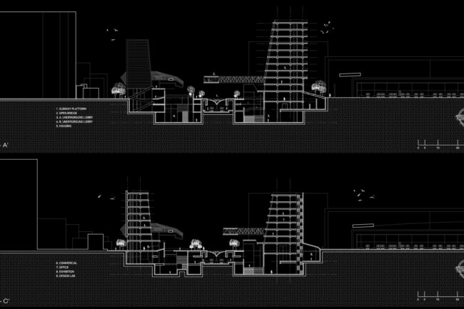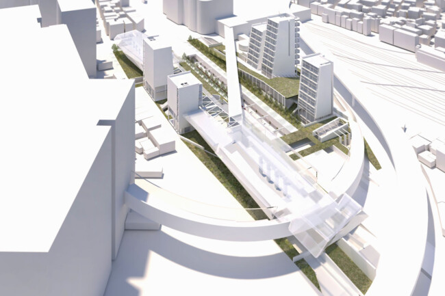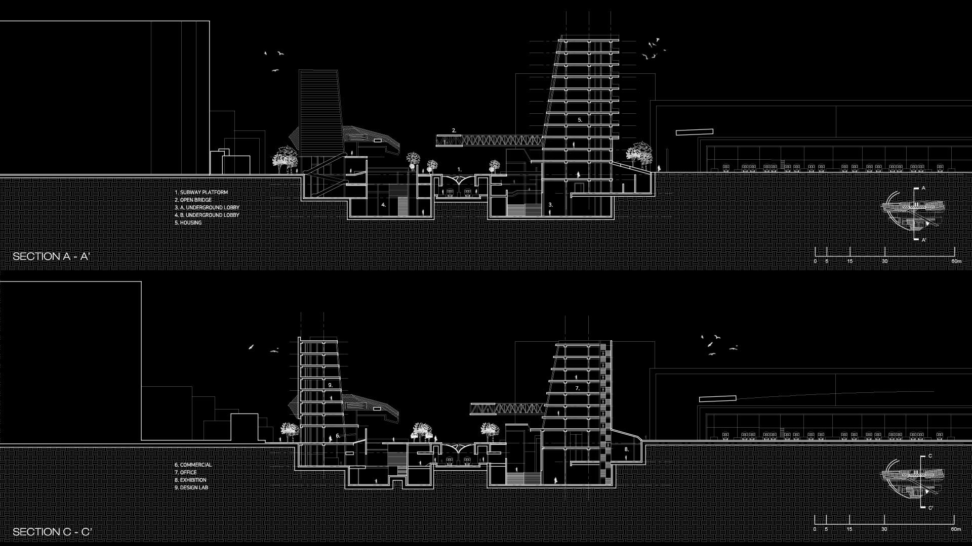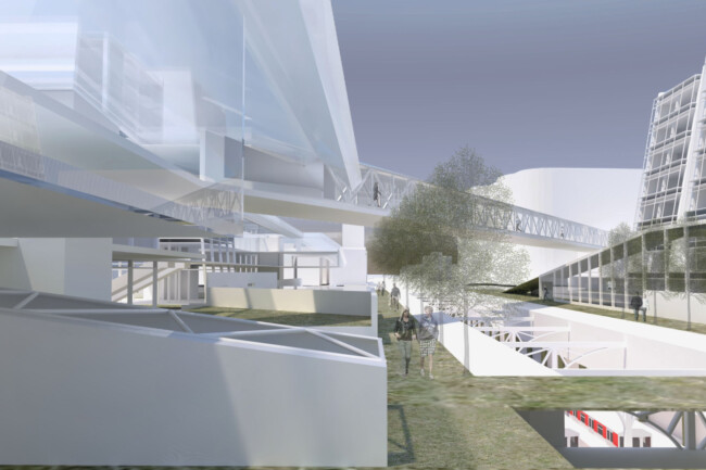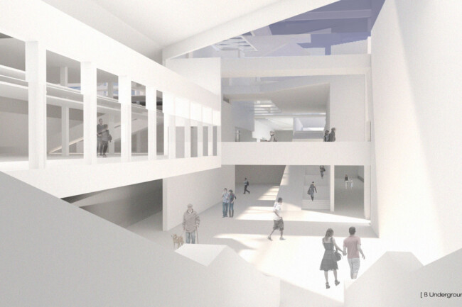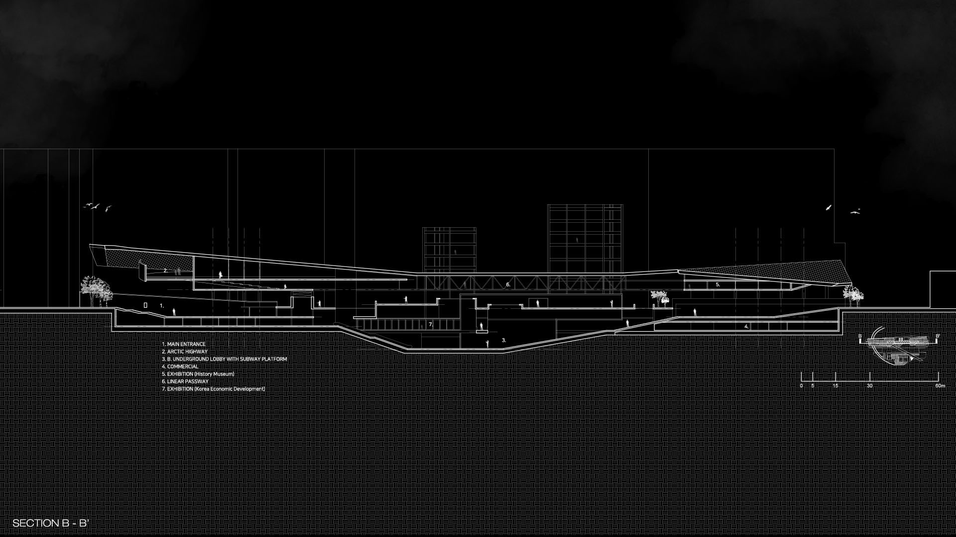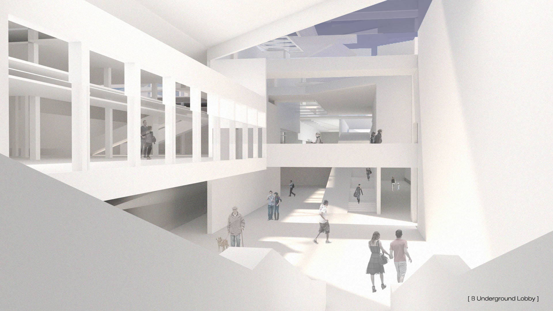 하지만 이 공간들은 도시적인 축에서 중요한 결절점에 위치하고 있다. 가시적인 도시형태의 선, 비가시적이고 추상적인 선들이 장소와 도시 사이의 경계를 약화시키고, 그만의 장소성을 만들어내어 도시적인 맥락들과 끊임없이 이어진다. 도시적인 컨텍스트들과, 과거의 흔적을 통한 비가시적인 축, 가시적인 도시의 형태들을 선들의 중첩과 교차를 주요 사회기반시설들과 함께 풀어내어 교류와 소통의 공간을 만들어내고자 한다.